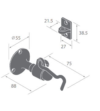 Wall type door holder with hookMaterial: Brass